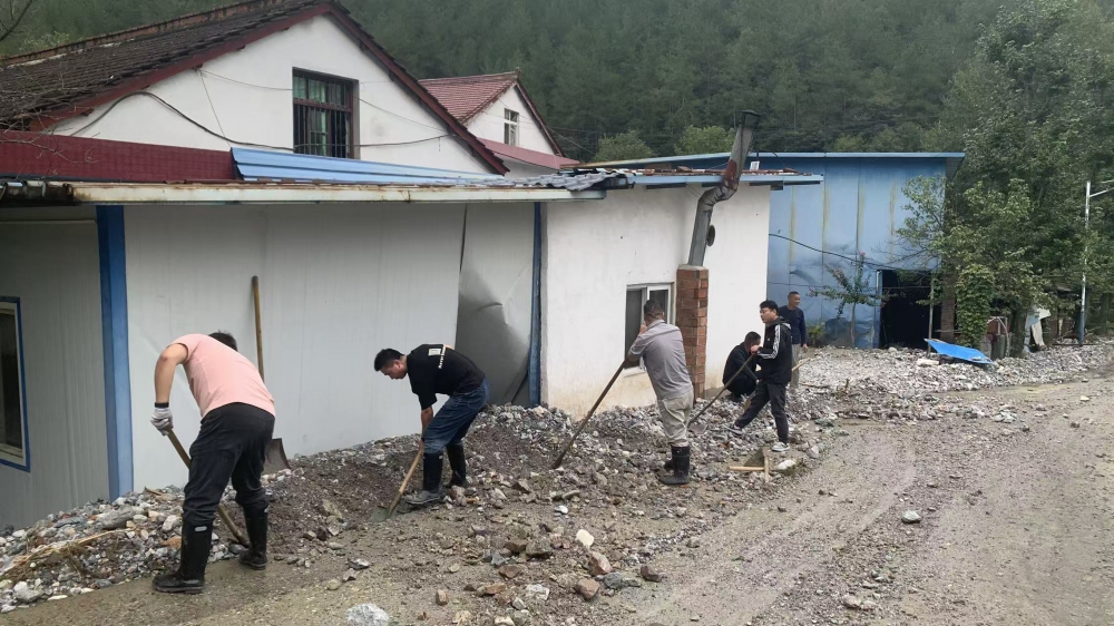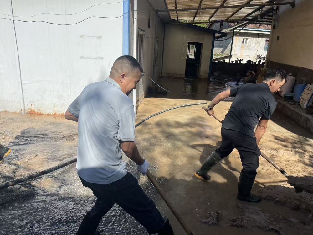在組織自救的同時,公司黨委心系周邊群眾,迅速組建“黨員志愿服務隊”,奔赴受災農戶家中開展幫扶。志愿者們幫助農戶清理院落內的積水和淤泥,并耐心安撫農戶情緒,詳細了解他們的需求,用暖心服務為受災群眾撐起“保護傘”。