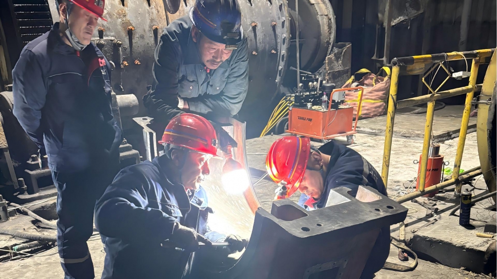 故障發(fā)生后,白玉銀興公司經(jīng)理田東清迅速抵達現(xiàn)場,根據(jù)設(shè)備故障狀況進行現(xiàn)場研判并采取果斷措施進行停機搶修。在搶修現(xiàn)場,黨員干部主動亮身份、扛重擔,充分發(fā)揮先鋒模范作用,成為搶修隊伍中的“主心骨”。田東清帶領(lǐng)維修團隊趴在設(shè)備旁仔細排查故障點,在刮瓦環(huán)節(jié)精細操刀,憑借多年豐富經(jīng)驗和專業(yè)技術(shù)儲備,勾畫出完美的弧線。為了加快搶修進度,搶修人員放棄休息時間,輪班作戰(zhàn)、每天連續(xù)工作16小時,累了就趴在桌上短暫小憩,始終堅守在搶修一線。食堂將飯菜、飲用水送到現(xiàn)場,確保搶修人員有充沛的體力。